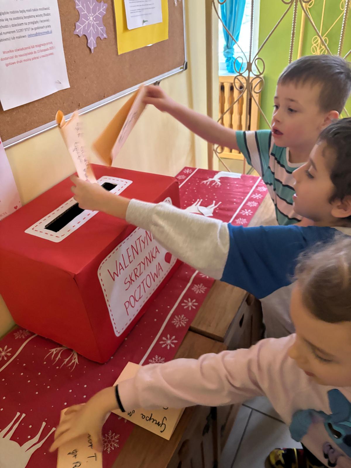 Dzisiaj w naszym przedszkolu obchodziliśmy Walentynkowy Dzień Życzliwości i Przyjaźni. To wspaniała okazja, aby rozmawiać z dziećmi o wartościach takich jak przyjaźń, empatia i wzajemny szacunek – już od najmłodszych lat ważne jest, aby uczyć dzieci, że drobne gesty życzliwości potrafią wywołać uśmiech i budować dobre relacje. Punktem kulminacyjnym dzisiejszego dnia była Poczta Walentynkowa. Grupa Biedronek wyruszyła pocztowym orszakiem, przy dźwiękach instrumentów i muzyki, roznosząc po całym przedszkolu piękne kartki walentynkowe. Dzieci przygotowały je samodzielnie lub z pomocą rodziców, aby wyrazić sympatię i pamięć o swoich kolegach, koleżankach oraz nauczycielkach. Serdecznie dziękujemy Rodzicom za pomoc i zaangażowanie w tę akcję – dzięki Wam dzisiejszy dzień był pełen radości, uśmiechów i pozytywnych emocji!