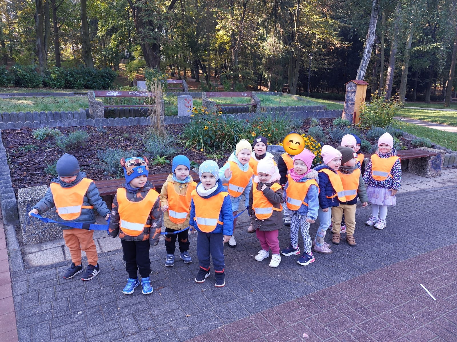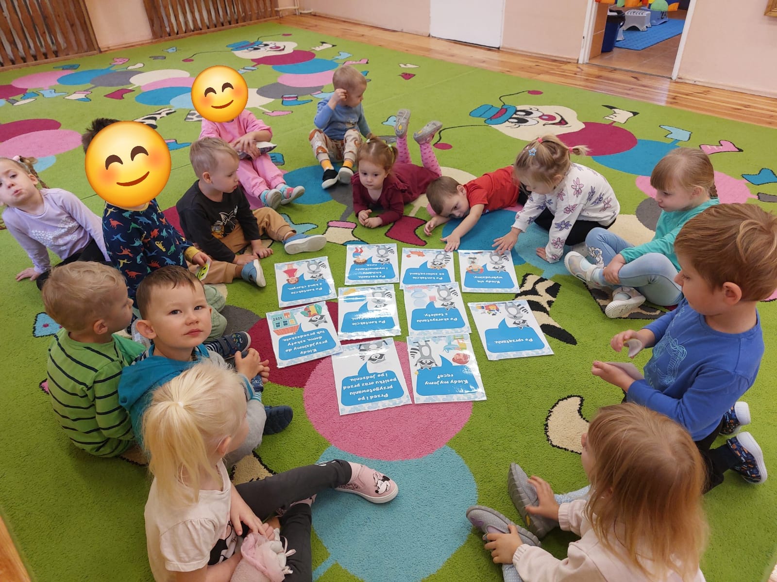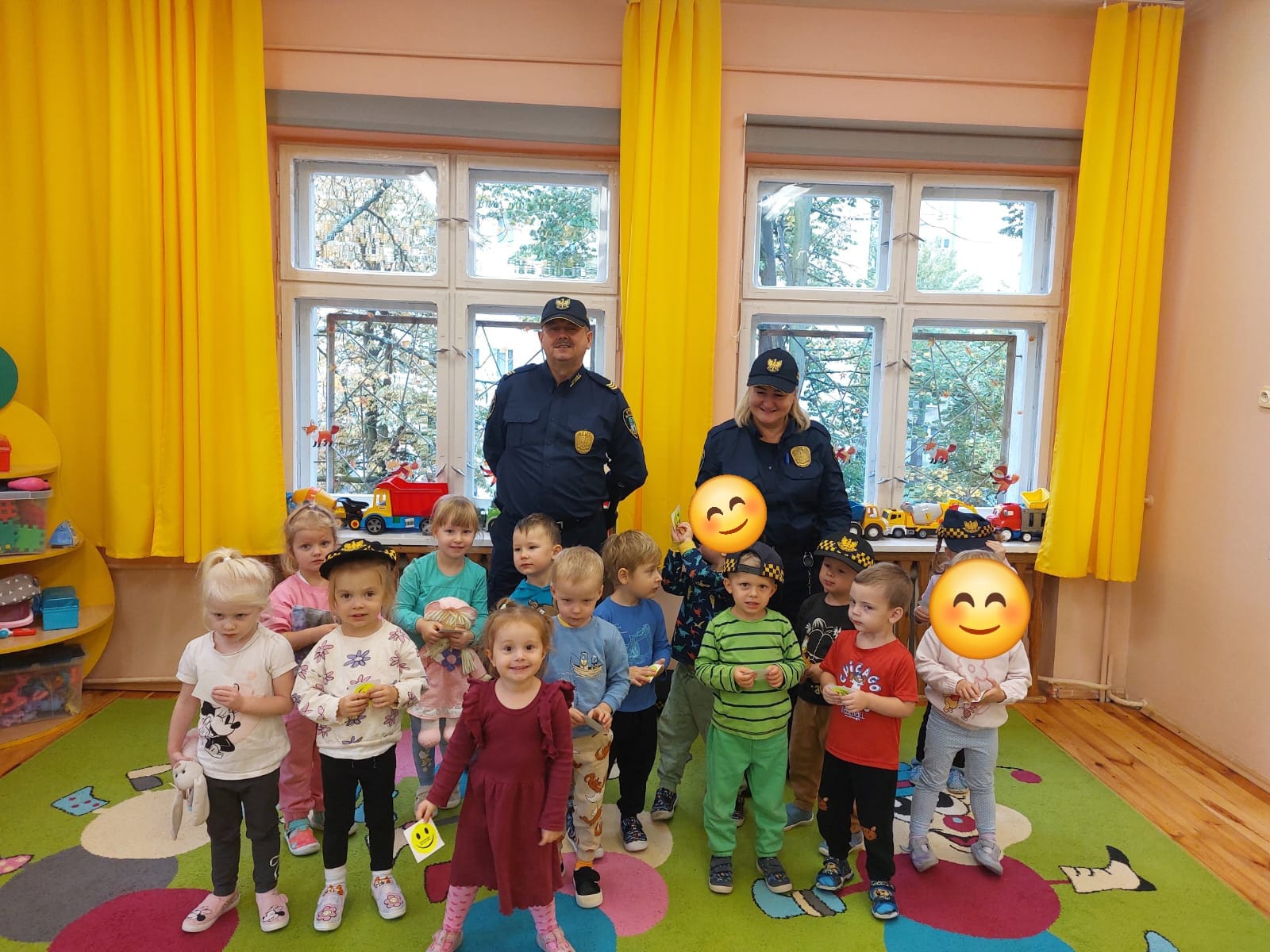 Dziś we wszystkich grupach wiekowych odbyły się wyjątkowe zajęcia edukacyjne ze strażnikami miejskimi ze Straży Miejskiej w Zielonej Górze. Podczas spotkania dzieci miały okazję poznać zawód strażnika miejskiego, zobaczyć z bliska elementy jego wyposażenia oraz dowiedzieć się, jak wygląda codzienna praca straży miejskiej. Głównym tematem zajęć było bezpieczeństwo na drodze – przedszkolaki przypomniały sobie zasady przechodzenia przez jezdnię, znaczenie sygnalizacji świetlnej oraz wybranych znaków drogowych. Dzieci chętnie uczestniczyły w rozmowie, zadawały pytania i dzieliły się swoimi spostrzeżeniami. Nie zabrakło również kolorowanek edukacyjnych, a na zakończenie każde dziecko otrzymało plakat ze znakami drogowymi, które ma za zadanie odnaleźć w drodze z przedszkola do domu. To było ciekawe i wartościowe spotkanie, które nie tylko wzbogaciło wiedzę dzieci, ale również przypomniało im, jak ważne jest bezpieczeństwo w codziennym życiu.