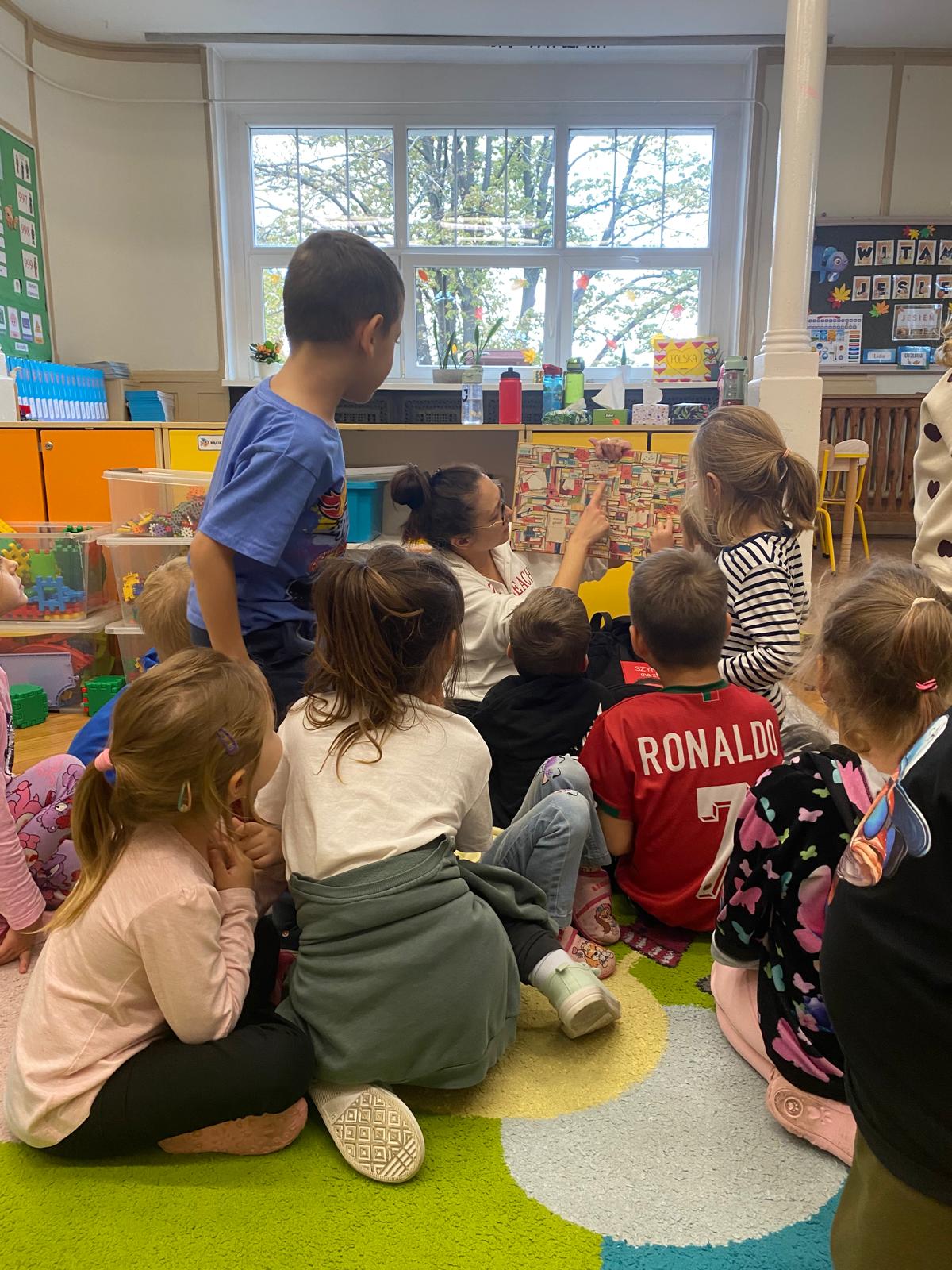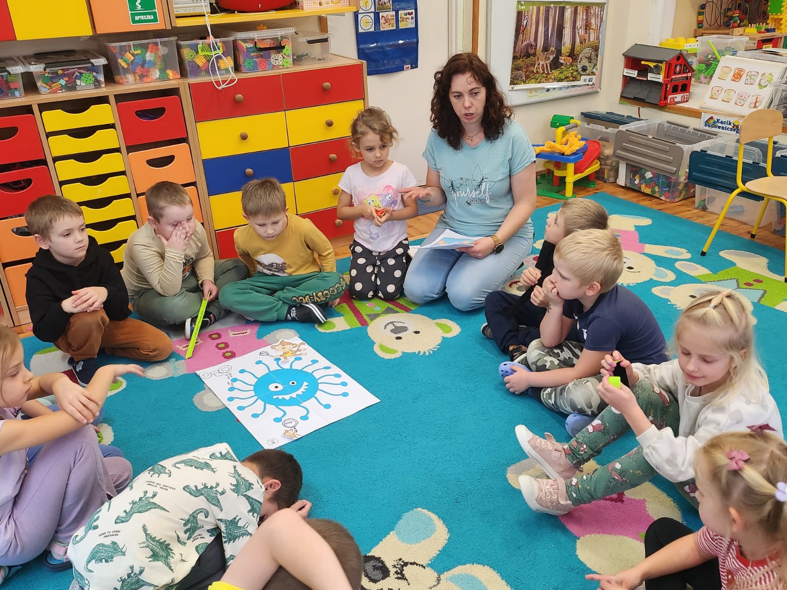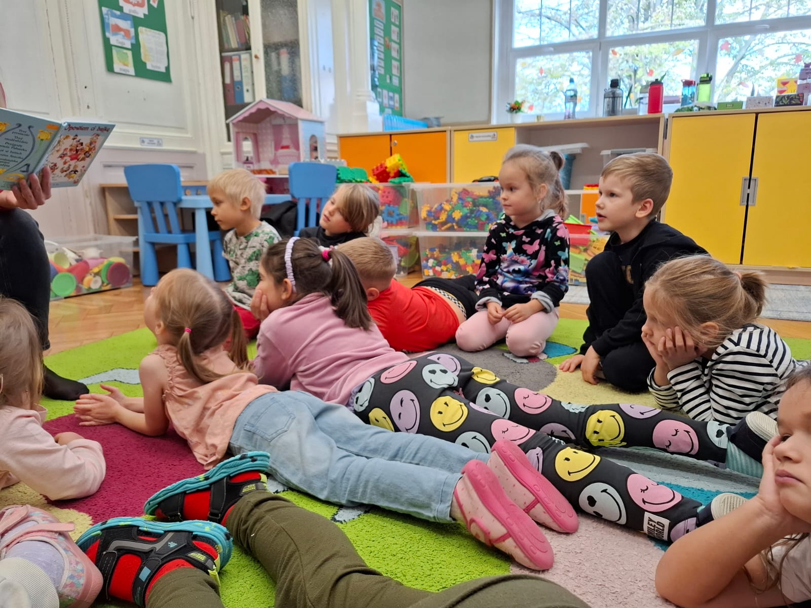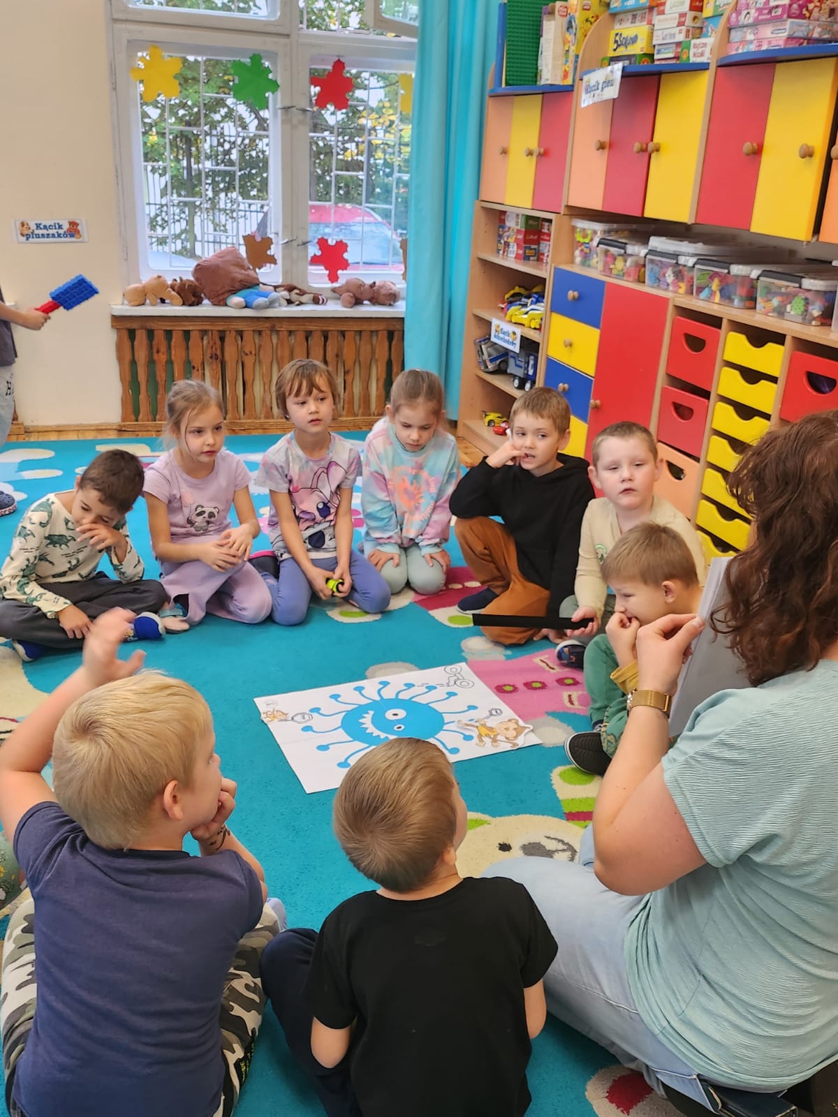 Dziś we wszystkich grupach wiekowych odbyły się wyjątkowe zajęcia edukacyjne ze strażnikami miejskimi ze Straży Miejskiej w Zielonej Górze. Podczas spotkania dzieci miały okazję poznać zawód strażnika miejskiego, zobaczyć z bliska elementy jego wyposażenia oraz dowiedzieć się, jak wygląda codzienna praca straży miejskiej. Głównym tematem zajęć było bezpieczeństwo na drodze – przedszkolaki przypomniały sobie zasady przechodzenia przez jezdnię, znaczenie sygnalizacji świetlnej oraz wybranych znaków drogowych. Dzieci chętnie uczestniczyły w rozmowie, zadawały pytania i dzieliły się swoimi spostrzeżeniami. Nie zabrakło również kolorowanek edukacyjnych, a na zakończenie każde dziecko otrzymało plakat ze znakami drogowymi, które ma za zadanie odnaleźć w drodze z przedszkola do domu. To było ciekawe i wartościowe spotkanie, które nie tylko wzbogaciło wiedzę dzieci, ale również przypomniało im, jak ważne jest bezpieczeństwo w codziennym życiu.