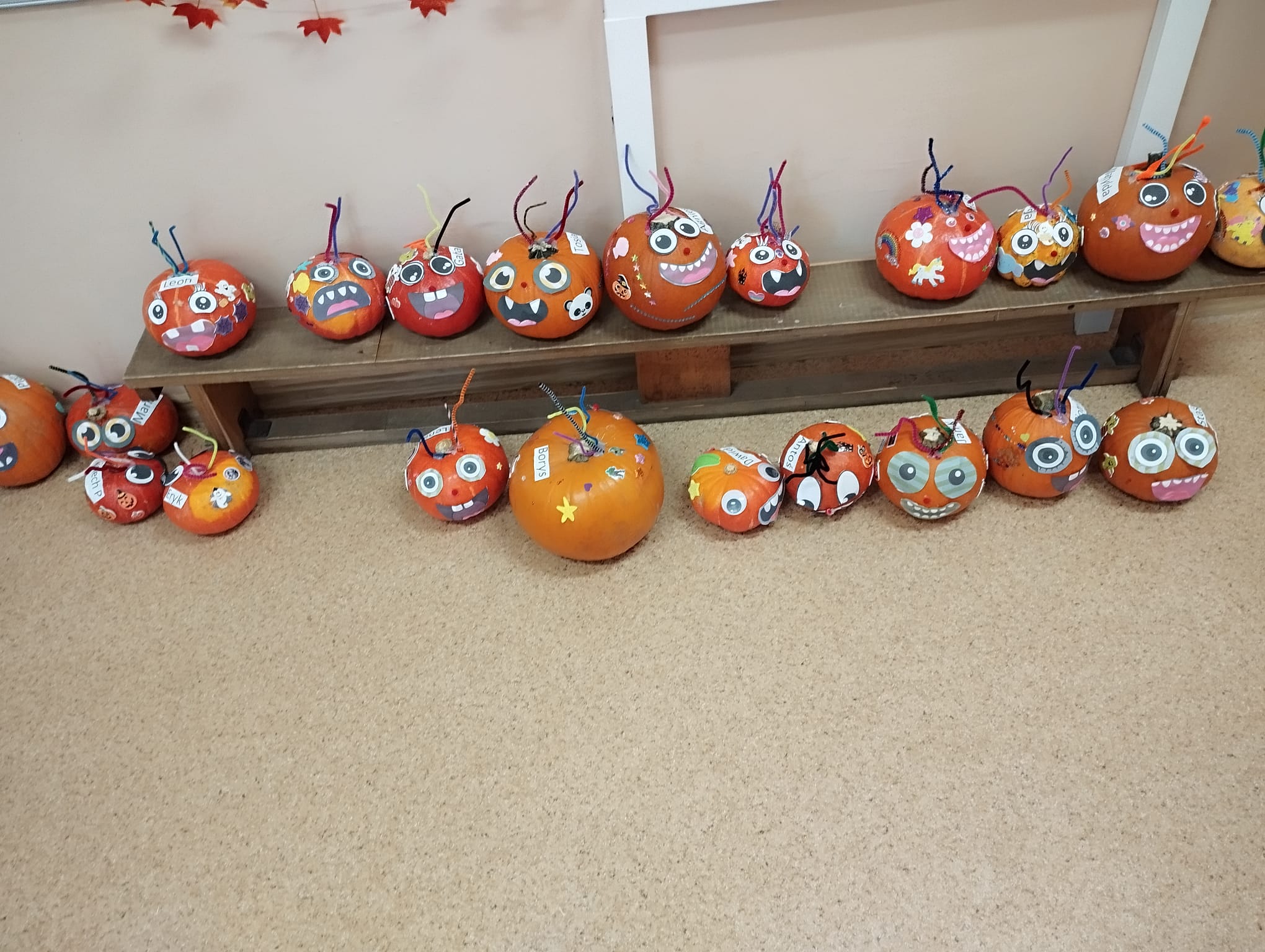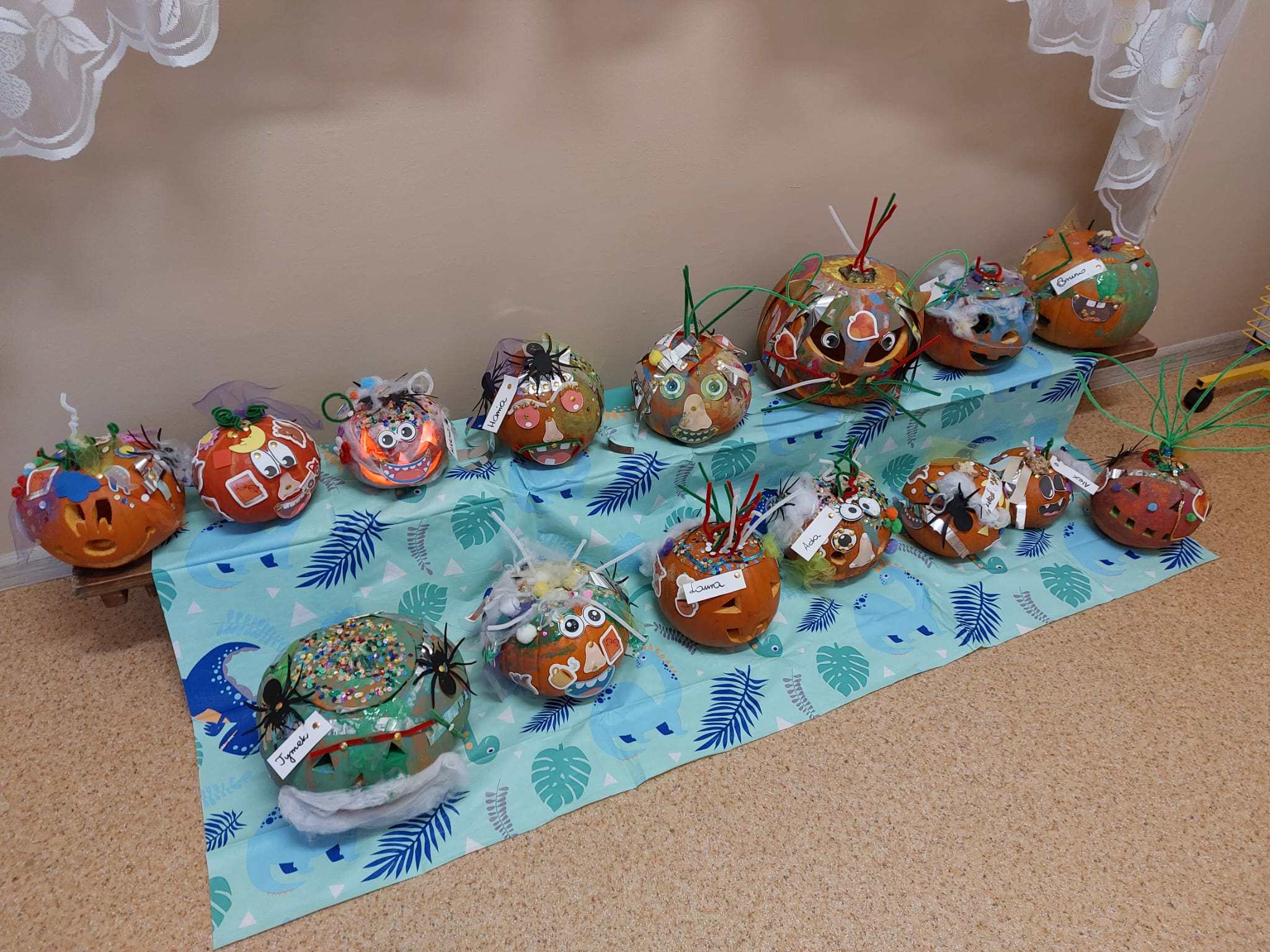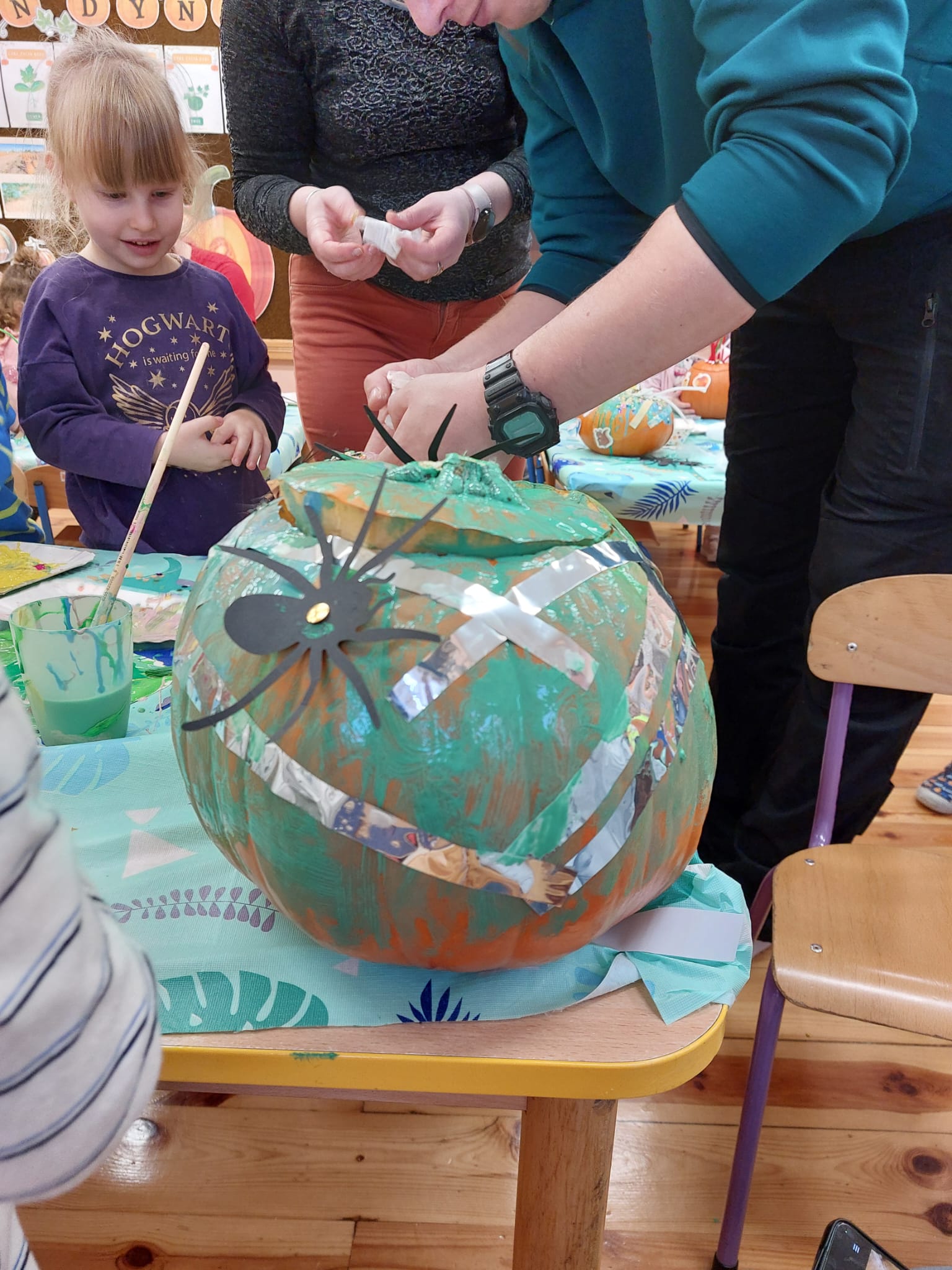 W piątek w naszym przedszkolu królowała dynia! Z okazji Dnia Dyni we wszystkich grupach odbyły się fascynujące zajęcia tematyczne. Dzieci odkrywały tajniki budowy dyni oraz poznawały jej drogę od malutkiego nasionka aż po dojrzały, soczysty owoc. Przedszkolaki z ogromnym zaangażowaniem dekorowały przyniesione dynie, tworząc kolorowe galerie, które teraz zdobią korytarze naszego przedszkola. Nie zabrakło także zabaw tanecznych i muzycznych, a nawet dyniowego kodowania na dywanie – to było prawdziwe połączenie nauki i zabawy! Na deser – a właściwie na obiad – dzieci miały okazję spróbować pysznej, aromatycznej zupy dyniowej przygotowanej specjalnie przez naszą szefową kuchni. To był dzień pełen radości, kreatywności i dyniowej magii!